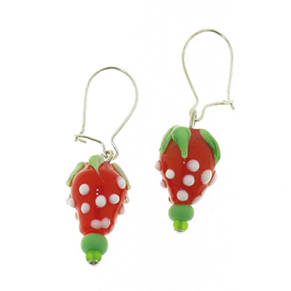Glasohrring Erdbeeren rot weiß grün, Glasp. grün