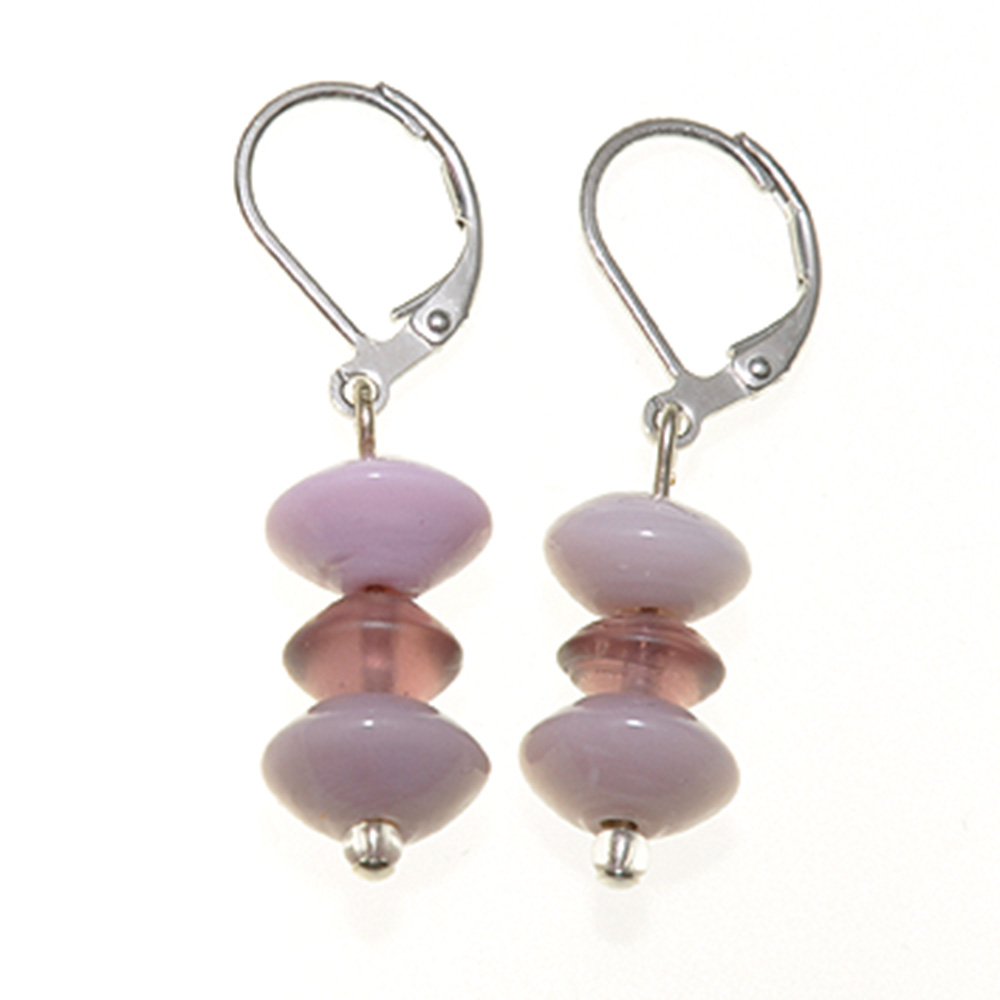 Glasohrring je 3 Glasperlen rosa/lila/malve