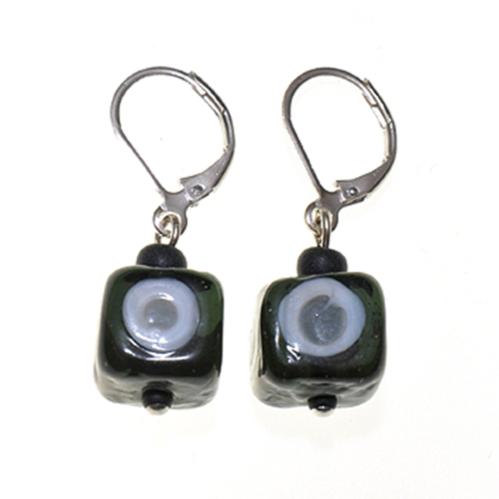 Glasohrring je 2 Glasperlen schwarz/weiß/grau