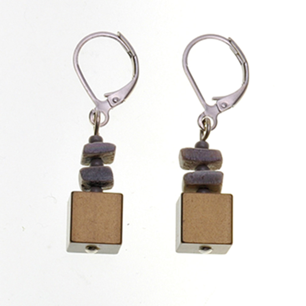 Ohrring mit Minkmuschel und Aluwürfel in Farbe gold
