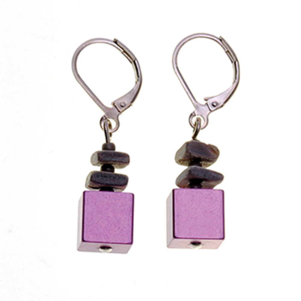 Ohrring mit Minkmuschel und Aluwürfel in Farbe lila