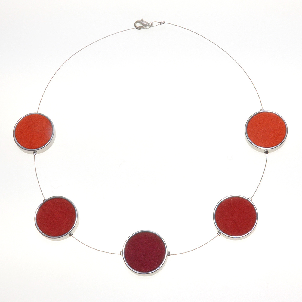 Wollfilzkette 5x Aluring 25 mm Filz orange / rot / bordeaux Länge ca. 43 cm