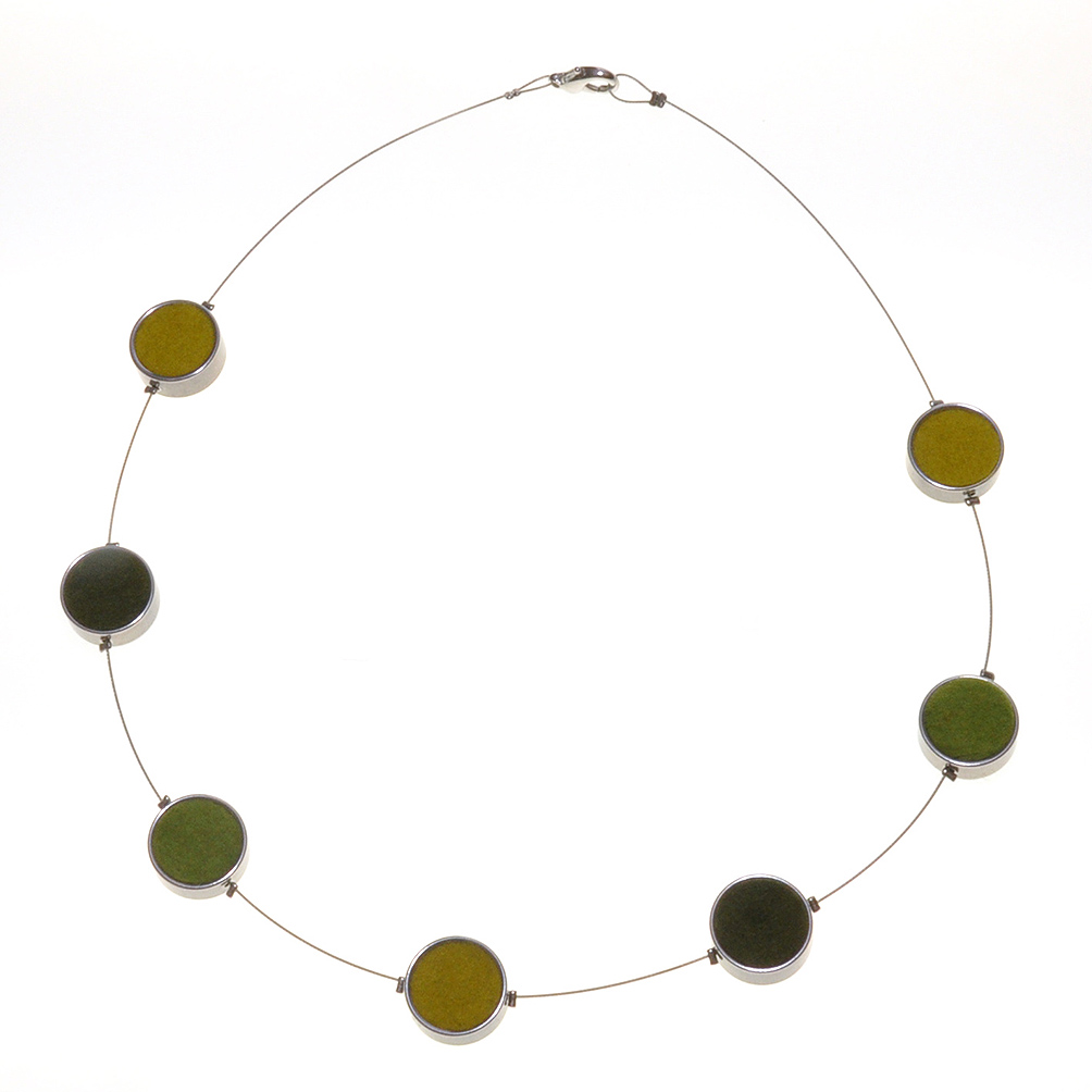 Wollfilzkette 7x Aluring 15 mm Wollfilz limette / kiwi / tanne Länge ca. 43 cm