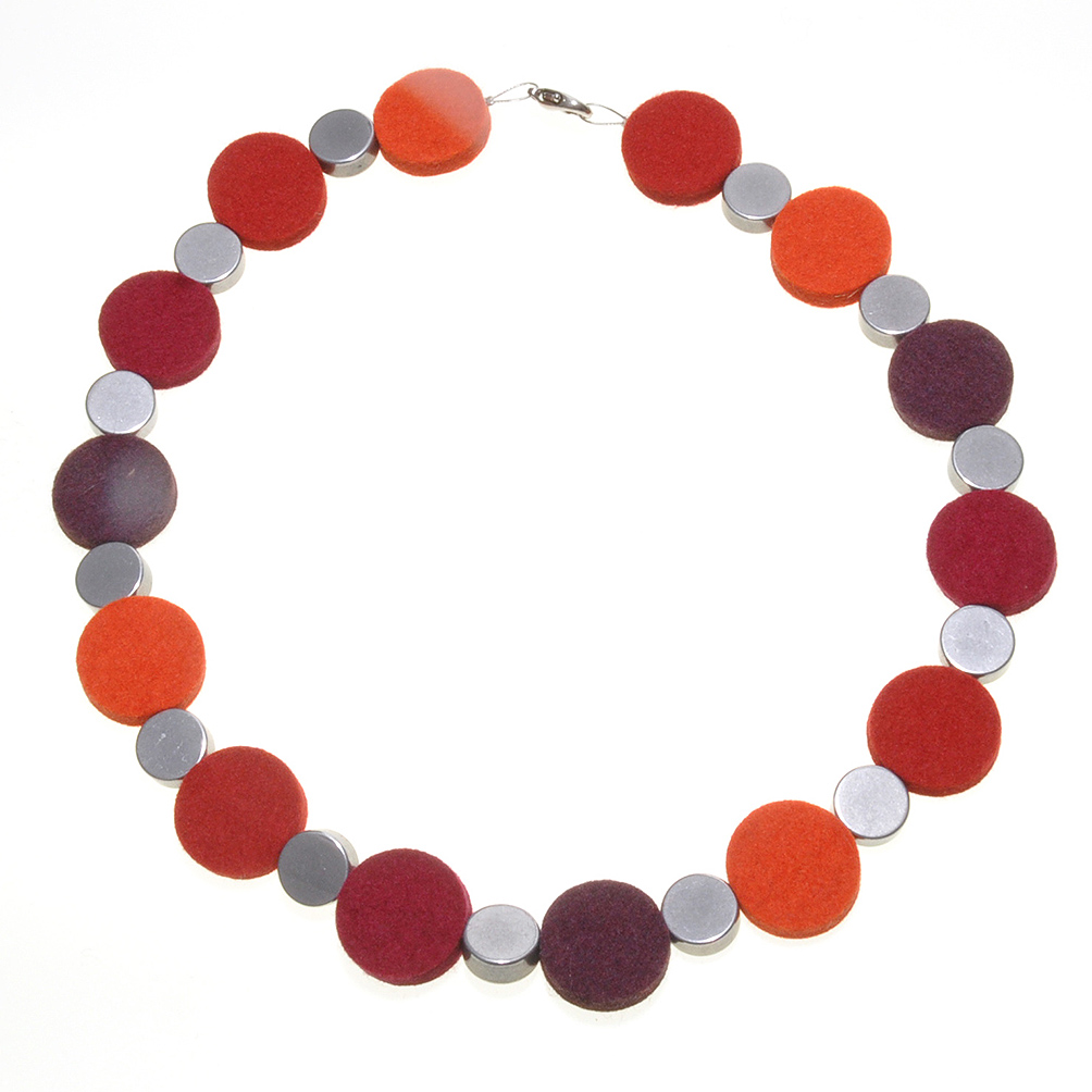 Wollfilzkette 13x Aluscheibe Vollmaterial 12 mm Wollfilz 20 mm orange / rot / bordeaux / aubergine Länge ca. 48 cm