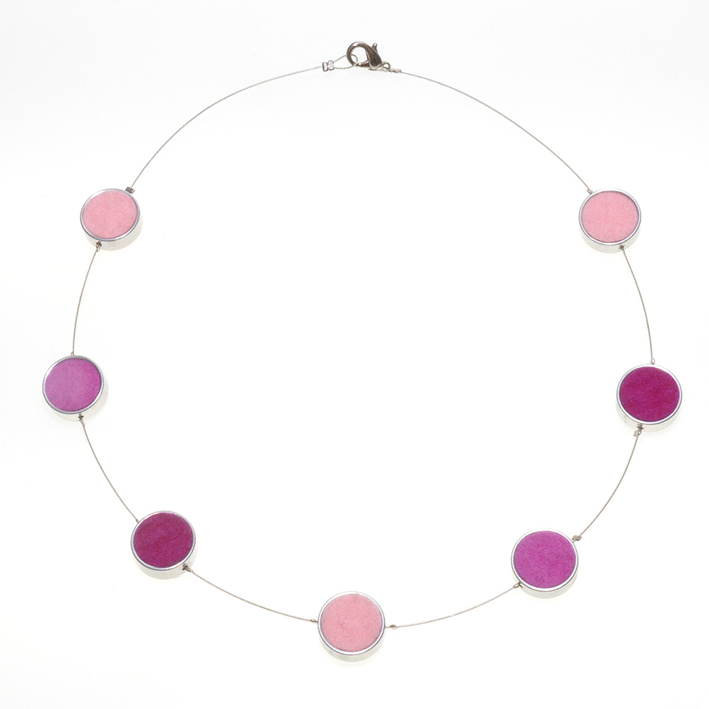 Wollfilzkette 7x Aluring 15 mm Filz rosa / fuchsia / pink Länge ca. 43 cm