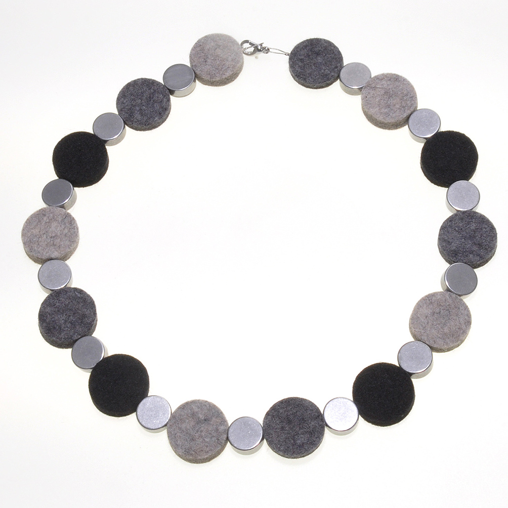 Wollfilzkette Aluplättchen Wollfilzscheiben grau schwarz