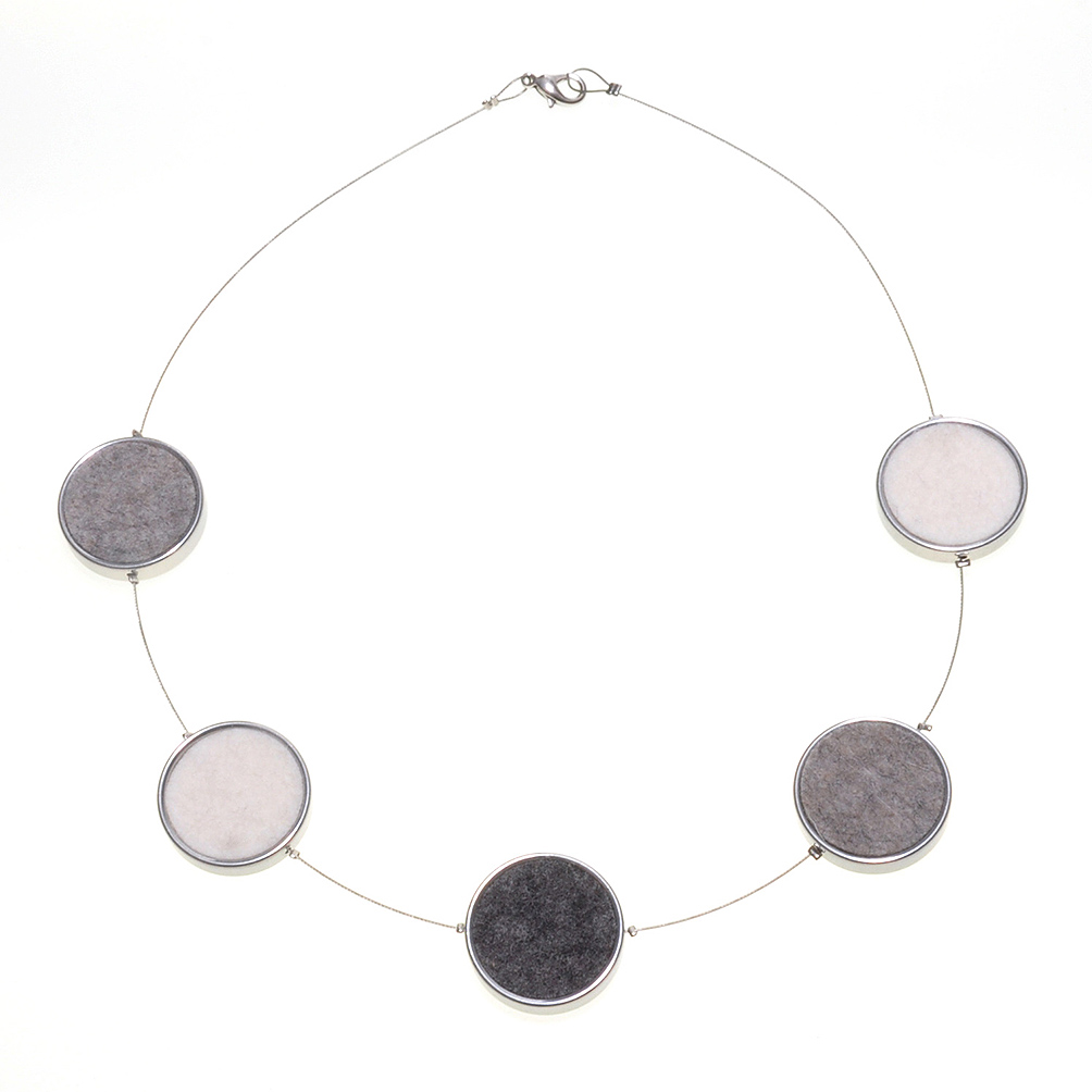 Wollfilzkette 5 Aluring Wollfilzscheiben weiß grau d.grau