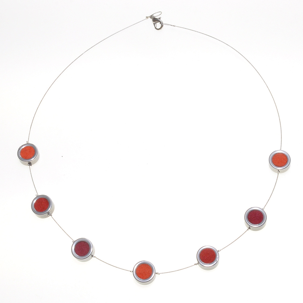 Wollfilzkette 7 Aluringe klein Wollfilz orange rot