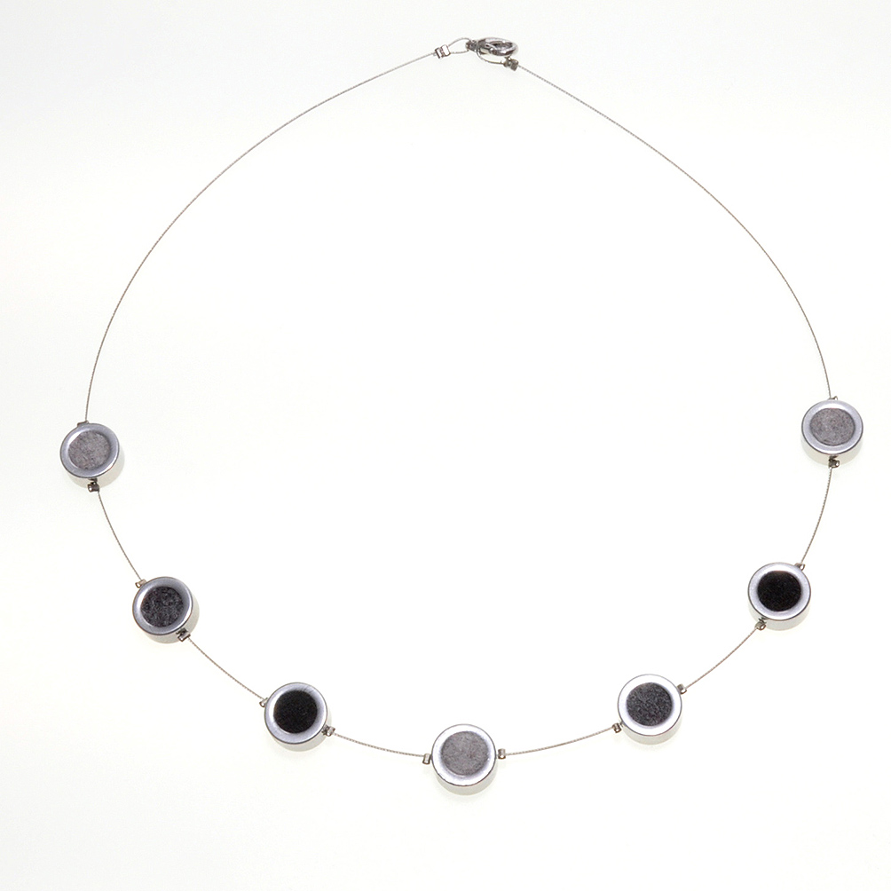 Wollfilzkette 7 Aluringe klein Wollfilz grau schwarz