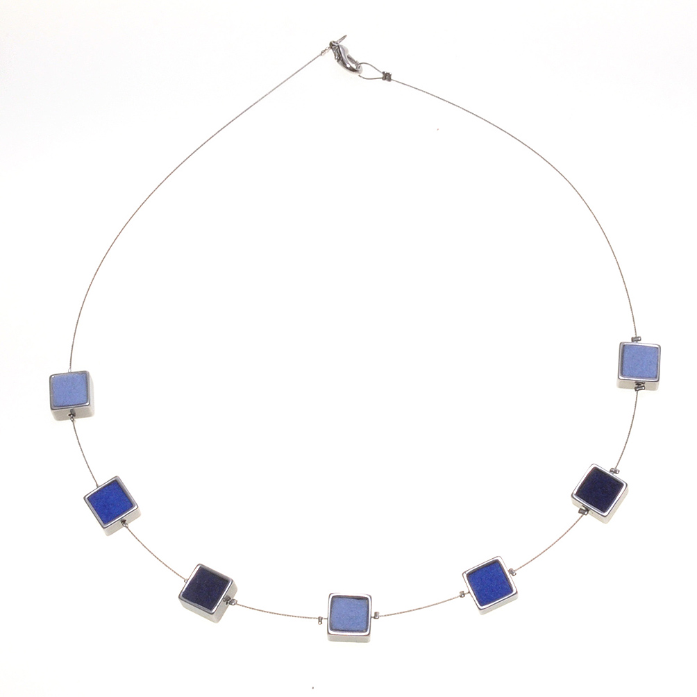 Wollfilzkette 7 Aluecken klein Wollfilz Blautöne