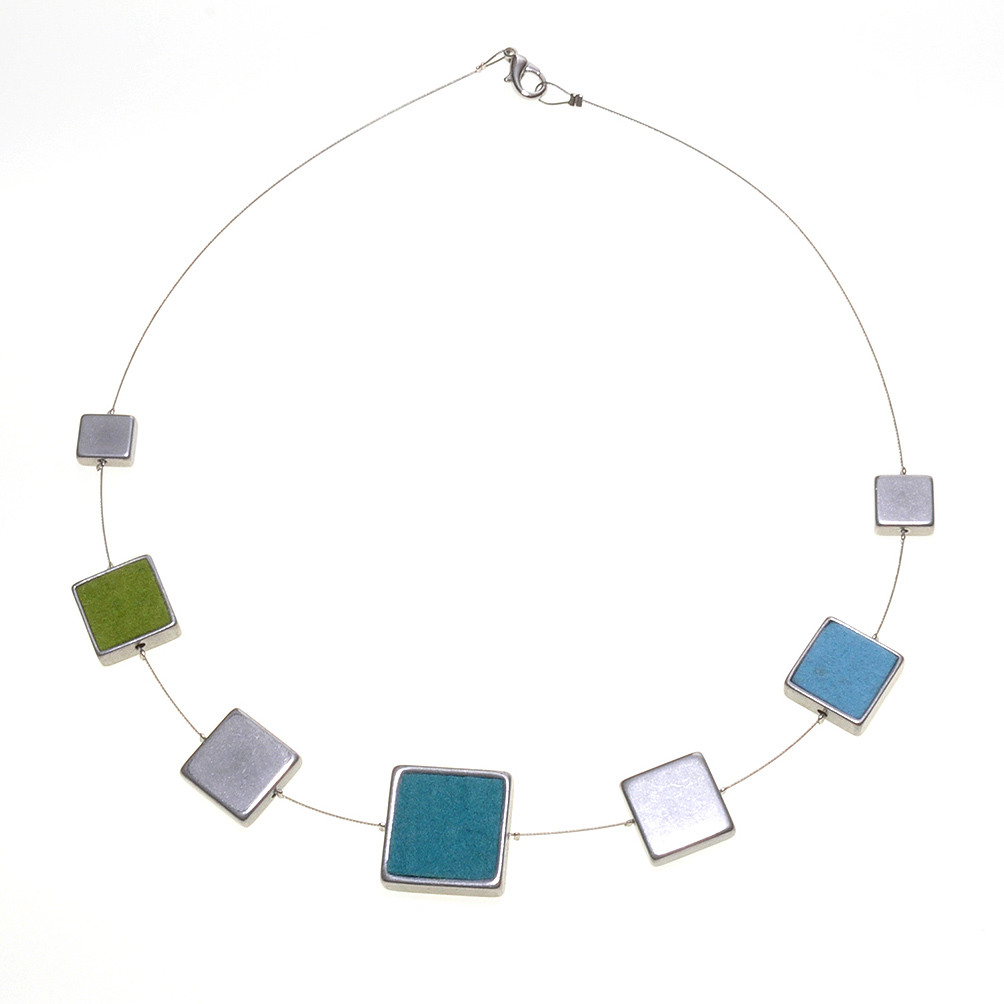 Wollfilzkette Aluecken Wollfilzecken grün türkis