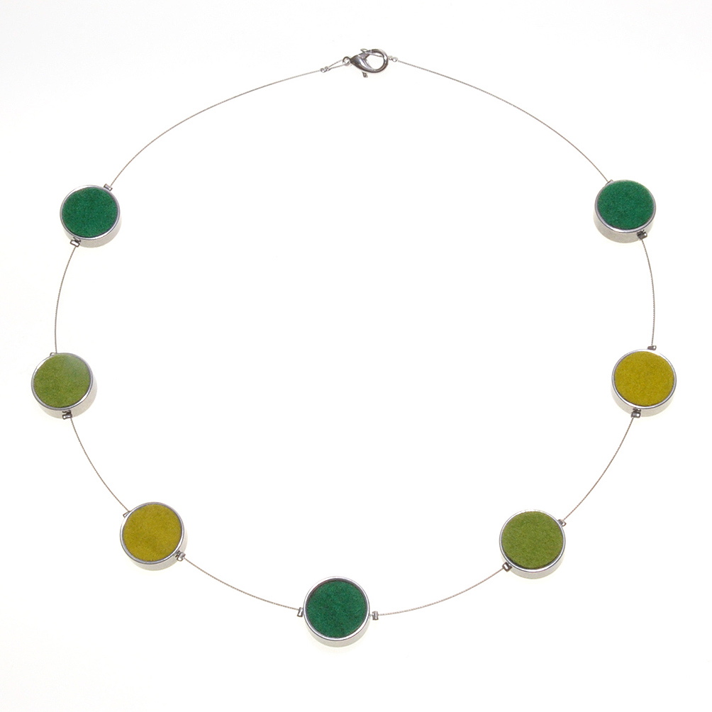 Wollfilzkette 5 Aluringe Wollfilz grüntöne