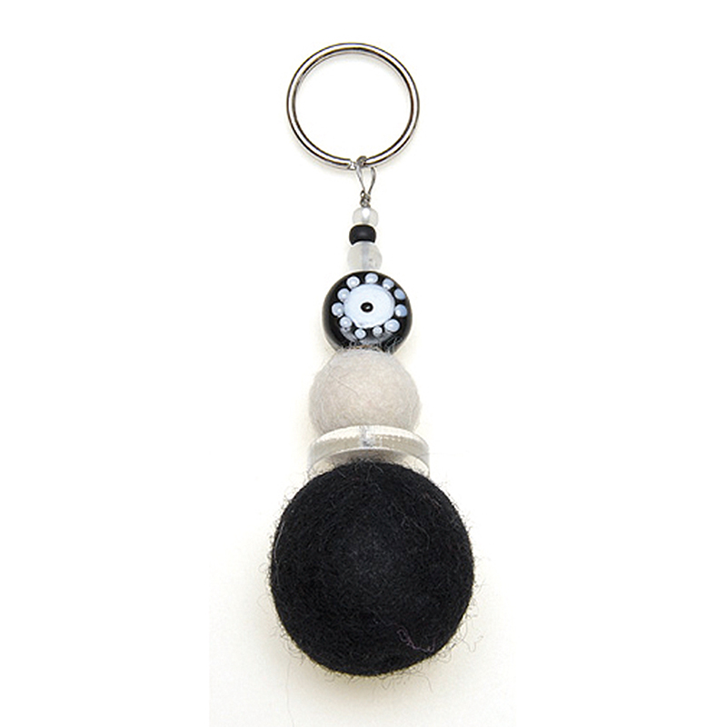 Schlüsselanhänger Filzkugel / Perlen schwarz weiß mit Wollfilz gefertigt