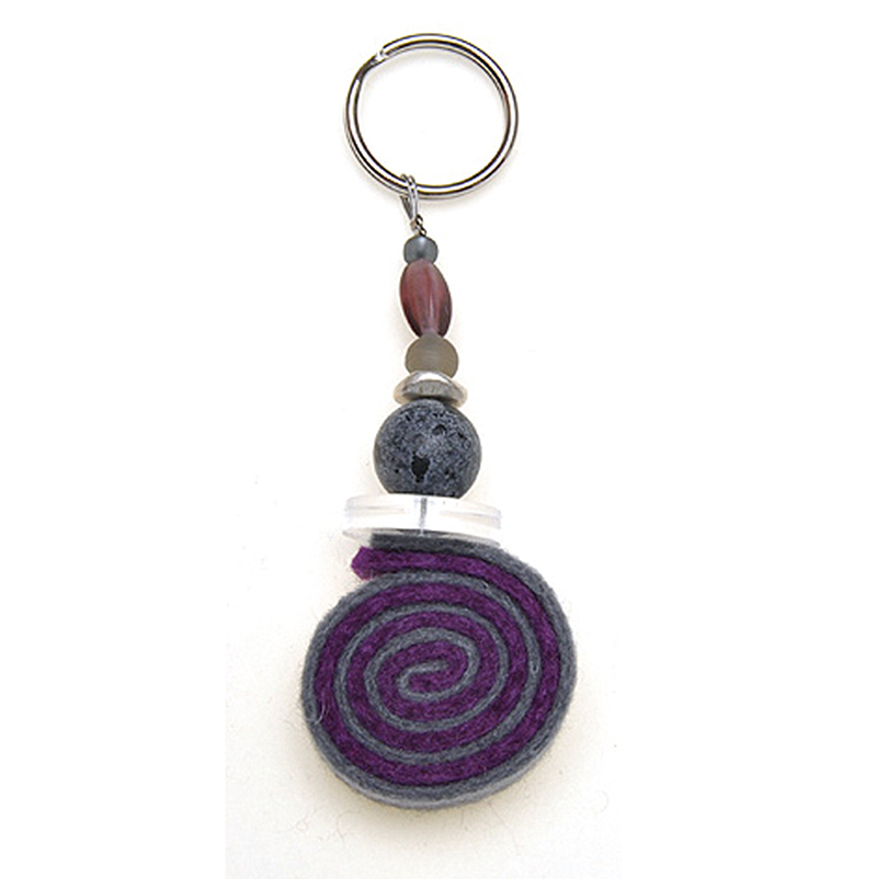 Schlüsselanhänger Filzschnecke grau lila Plexischeibe Glasperlen lila grau mit Wollfilz gefertigt