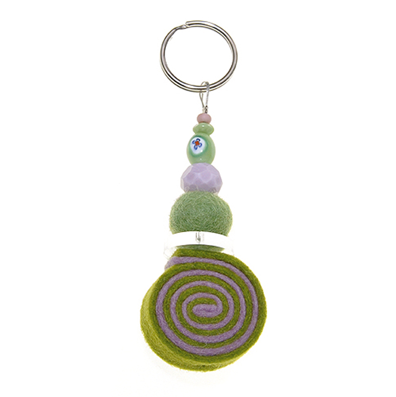 Schlüsselanhänger Filzkugel/Filzschnecke grünrosa mit Wollfilz gefertigt