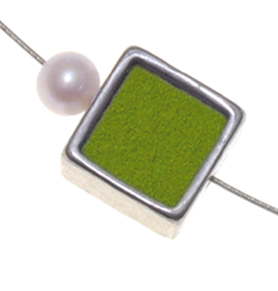 Wollfilzkette Aluquadrat 10x10 mm Wollfilz kiwi mit 1 Süßwasserperle Länge ca. 43 cm