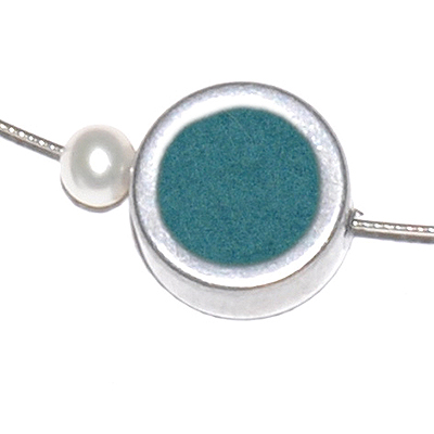 Wollfilzkette Aluring 12 mm Wollfilz dunkeltürkis mit 1 Süßwasserperle Länge ca. 43 cm