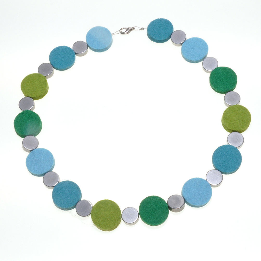Wollfilzkette 13x Alu Vollmaterial rund 12 mm Wollfilz 14x Wollfilz dunkel-/helltürkis apfel kiwi Länge ca. 48 cm
