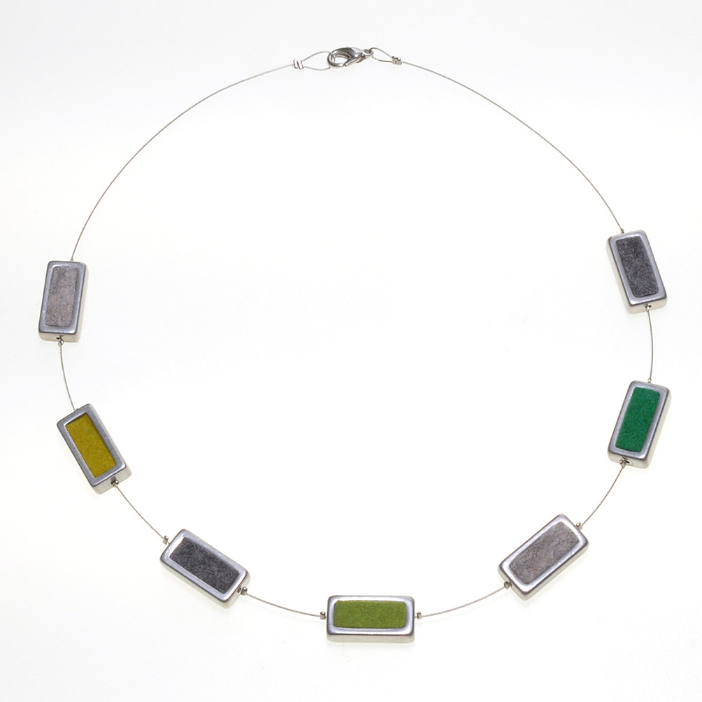 Wollfilzkette 7x Alurechteck 20x10 mm Wollfilz hellgrau / limette / dunkelgrau / kiwi / apfel Länge ca. 45 cm
