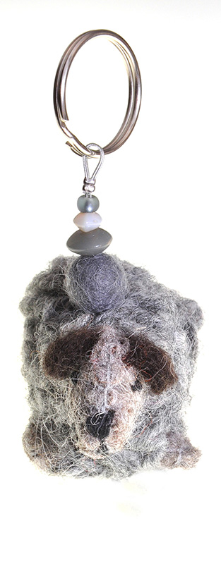 Schlüsselanhänger aus Wollfilz mit Tiermotiv "Schaf" in grau