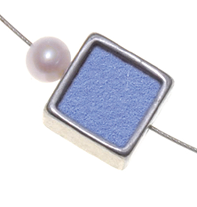 Wollfilzkette Aluquadrat 10x10 mm Wollfilz hellblau mit 1 Süßwasserperle Länge ca. 43 cm