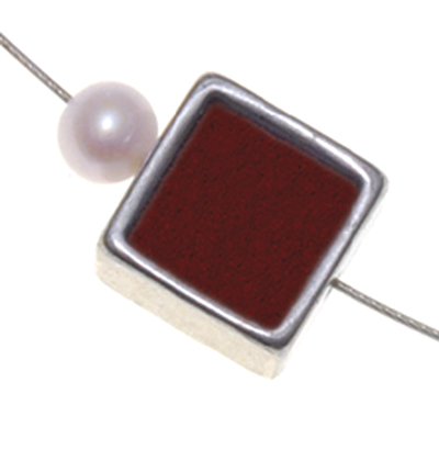 Filzkette Aluquadrat 10x10 mm Filz dunkelbraun mit 1 Süßwasserperle Länge ca. 43 cm