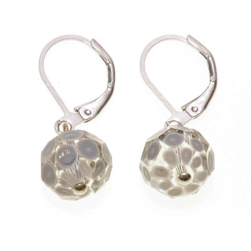 Ohrring mit Kugeln aus Glas Ø ca. 12 mm in transparent mit diversen aufgemalten Kreisen in grau