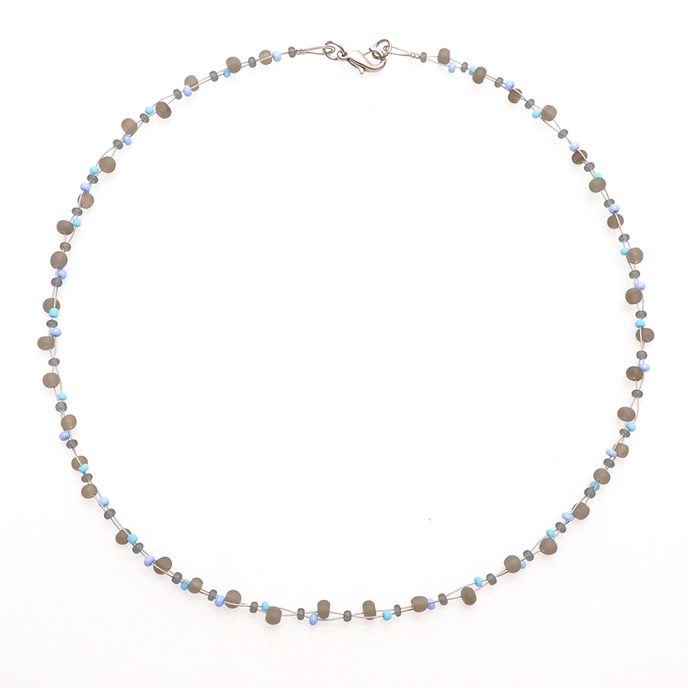 Fädelkette doppelt gefädelt mit großen und kleinen Glasperlen in den Farben hellgrau und hellblau und helltürkis Länge ca. 45 cm