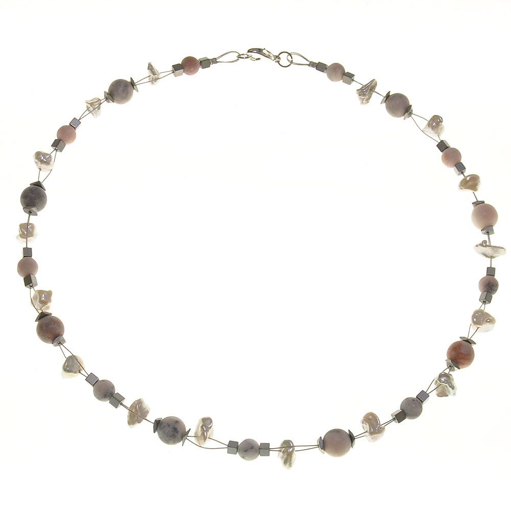 Kette mit Perlen aus Zebrajaspis, Hämatit und Perlmut