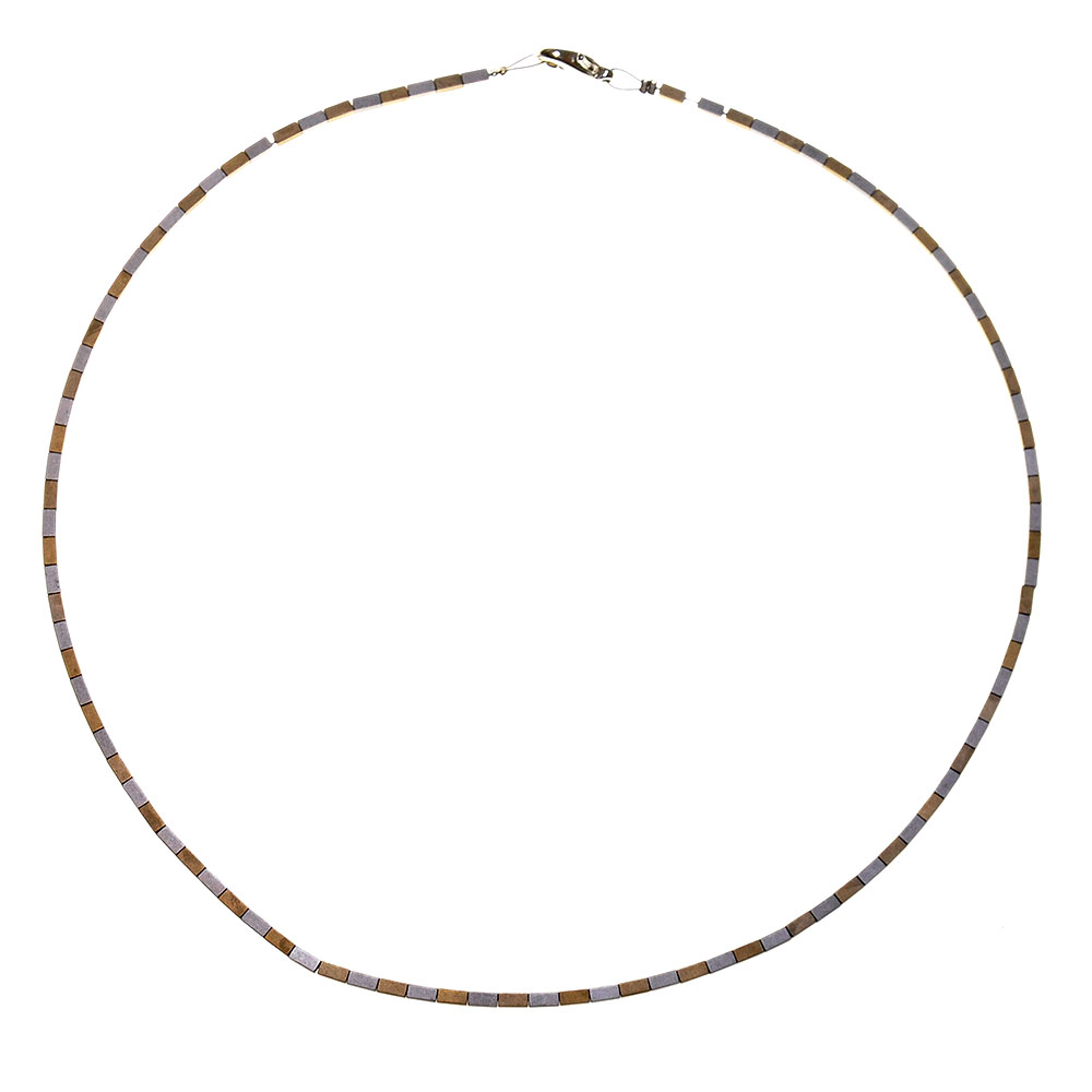 Fädelkette mit Hämatit Würfel länglich, hellgrau und gold